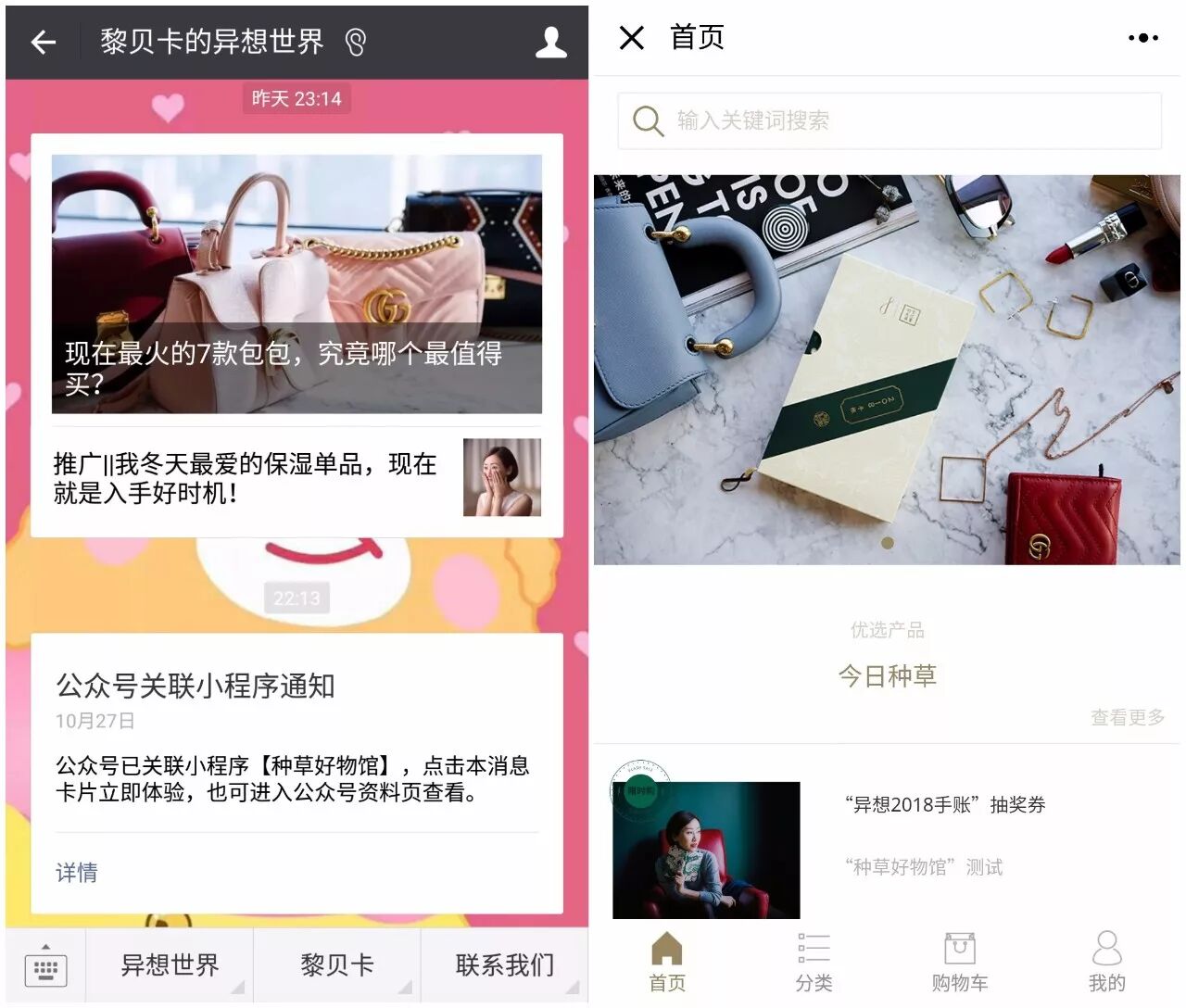而细心者会发现,就在“黎贝卡的异想世界”三周年到来前两天,她们也悄然关联了电商小程序“种草好物馆”。