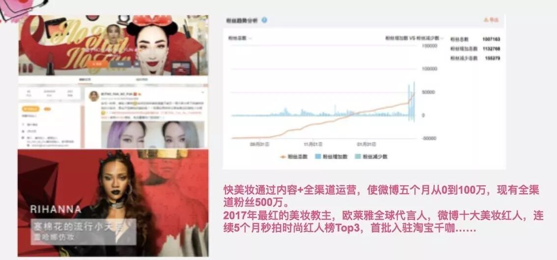快美妆创始人 陆昊:短视频发展至今流量结构的变化带来了一些新趋势,垂直化是一种趋势。同时重度介入运营、重度介入行业变现是一个方式,帐号筛选工业化、内容生产工业化、运营的工业化以及广告的电商变现,才是 MCN 2.0 时代的玩法,目前快美妆签约时尚红人超过 200 名,红人粉丝超过 5000 万,旗下美妆短视频每月播放量超过 8 亿,我们认为垂直化是 MCN 模式未来的突破口,而一个 MCN 成熟的标志在于:体系化、建立流量以及运营方面的优势、能够“从 1 到 100 ”推大红人效应、而最根本的是要盈利,实现商业价值。