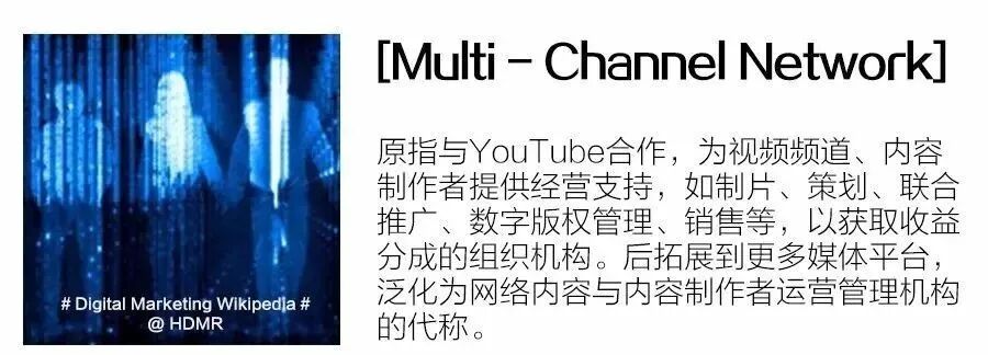 随着 MCN 数量的增加,一些早期玩家开始提供跨平台的内容运营与广告投放服务,逐渐形成 MPN(multi-platform network)模式,也有不少内容网络放弃了大而全的运营思路,转向细分领域,如美妆、游戏、美食等。