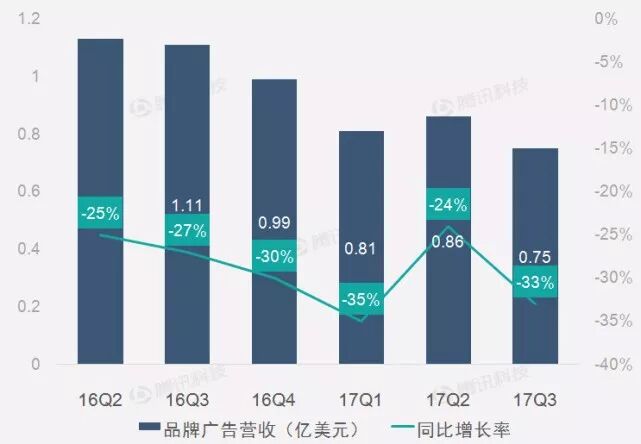 搜狐的品牌广告营收趋势图。来源:腾讯科技