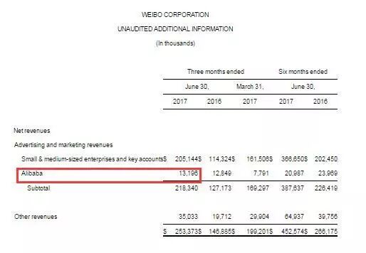 今年第二季度微博财报,来自阿里的广告收入是1319.6万美元