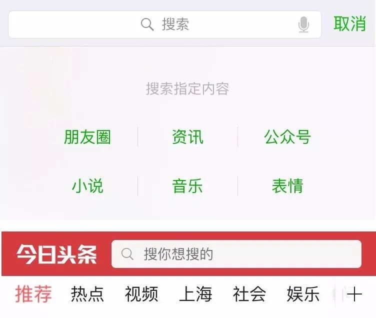 搜索和信息流是两种逻辑,前者是有目的、主动去获取信息,而后者是较为被动的浏览、接受信息。而如今这两种方式的界限越来越模糊:你打开百度时,不用搜索功能也能看到下方大量的文章内容,当你打开微信微博今日头条时,能在搜索框里查找到平台内及外部的信息。