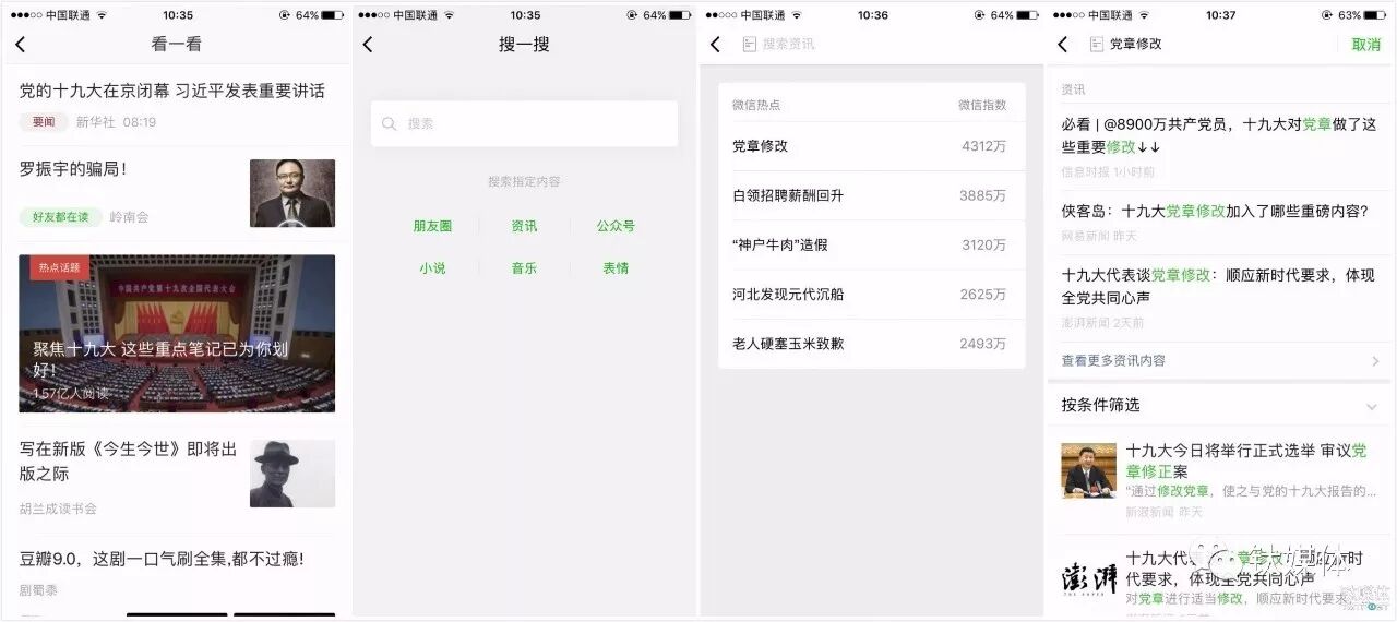 5月17日,微信在“微信实验室”中引入看一看、搜一搜功能