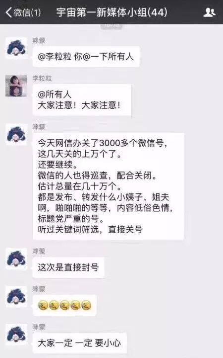 有消息称,本次封号为网信办主导,已经封了3000多个号,就连前几个月已经“控制尺度”的号也无法幸免,建议大家最近发内容一定要注意注意再注意。