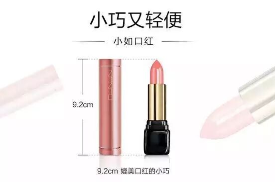 你看,这个问题直接用一张口红的参照图就解决了,非常直观形象,看的人都知道了这个迷你充电宝好小啊,竟然和口红差不多大小。