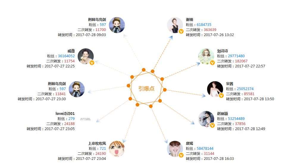 而最终一条有足够信息张力的消息,其传播效果就与内容传播力、关注度、粉丝结构、二度传播轨迹密切有关。