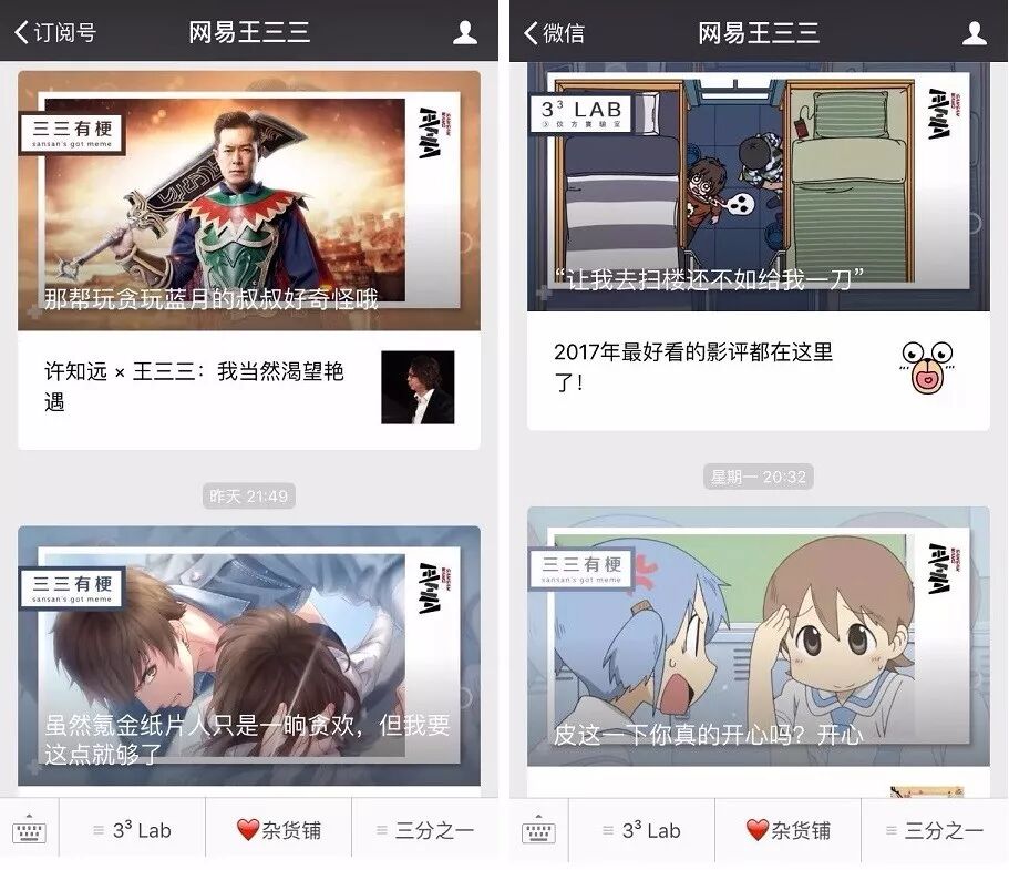 榜妹发现“网易王三三”公号的头图设计也很有特色。据“网易王三三”的编辑介绍,原本的头图有内外两层线框,在微信改版后显示不完整,有点别扭,于是最近头图的设计进行了一次改版。