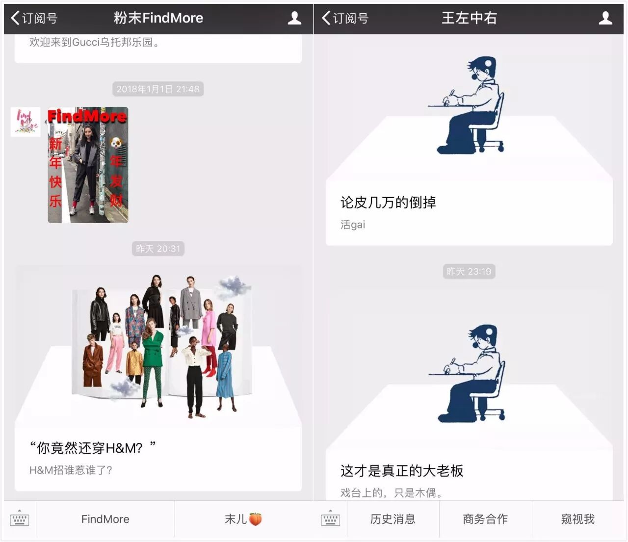 当然,这还是比较基础的玩法,在这个模板上,“粉末FindMore”“王左中右”等账号直接“搭台唱戏”,运用头图下方的白框,直接打了个立体的“台子”。