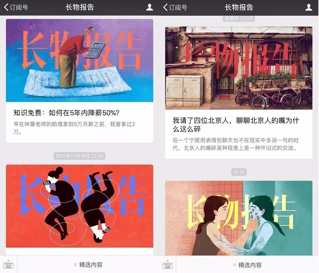 虽说新媒体碎片化、节奏快,但实际上大号们仍然在排版上颇费苦心,一些精心设计过的公号有浓浓的杂志风。通过独具一格的头图赢得青睐,这也是自媒体品牌化进阶的一种方式。