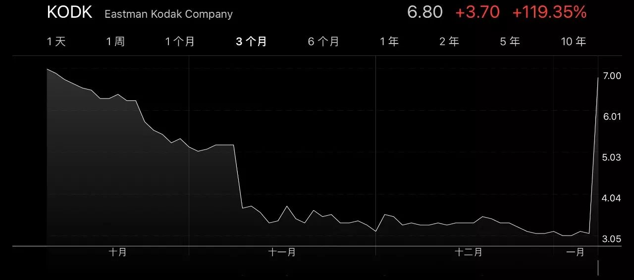 不光是中国,全世界都一样。你知道伊士曼柯达公司吗?对就是那个失意的胶卷巨头,1月9日宣布推出自有加密货币“柯达币”(KodakCoin),股价应声上涨130%,疯不疯?