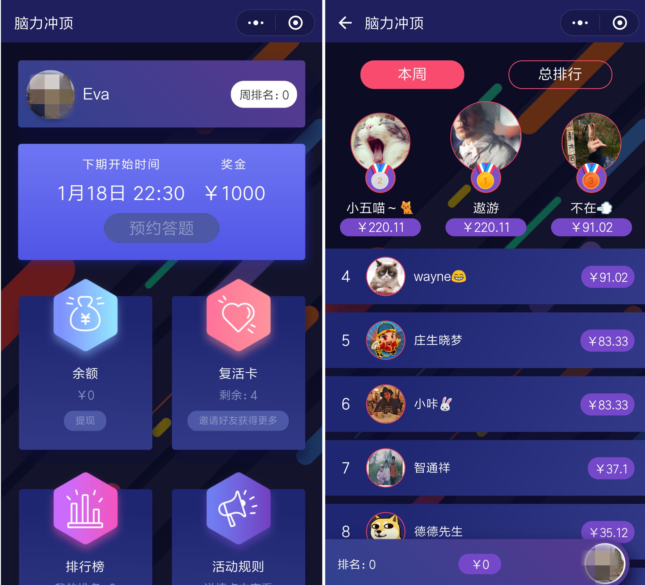 榜妹认为,答题直播或许更适合小程序。毕竟在微信生态里,答题直播更能形成闭环。