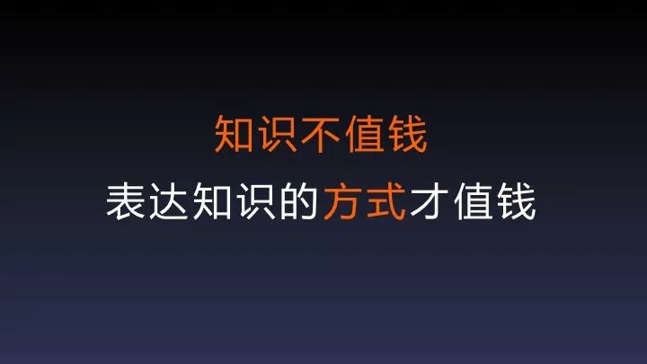 首先,虽然我们的主题是知识付费,但是知识不值钱,表达知识的方式才值钱。这应该是这个领域中一个很重要的观念。当然,这句话是针对这个行业领域,而不是说研究者不值钱。
