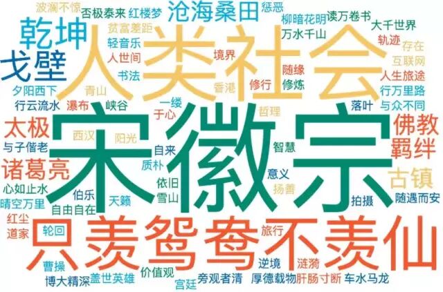 当用户进入“朋友印象”里,我们会从方方面面的社交中抓取关键词。他们都提到过宋徽宗、人类社会、互联网、太极、人生旅途等,那这两个人碰到一块的时候,心情是莫名的激动,甚至是令人恐怖的激动。