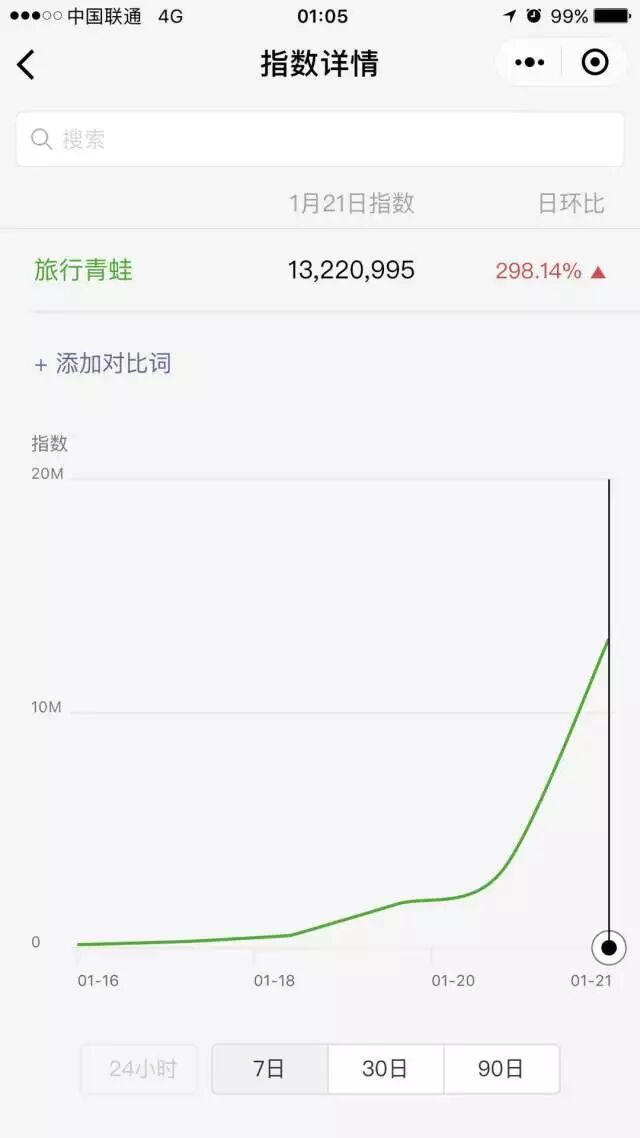 是的,就是这样一个听起来有些无趣,甚至连中文版都没有的游戏,却只用了短短两天的时间,就刷屏了朋友圈和各大社交媒体,占据了app store免费游戏排行榜第一,微信指数也是一夜冲顶。