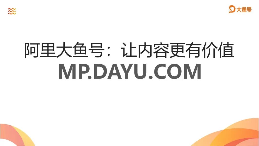 最后,我们重新回顾一下大鱼的口号“让内容更有价值”,也希望能够有更多的内容创业者跟我们一起合作,给我们多提宝贵的意见,与我们平台一起共同成长。谢谢大家。