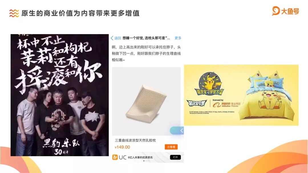 其实淘系已经具备了非常成熟的商业属性、用户识别的基础,大鱼号是阿里大文娱集团作为内容创业者接入的平台,来帮助大家通过商业体系赋能。这就是为什么我说成熟的商业生态带来原生的商业价值,为内容创作者带来更好的赋能。
