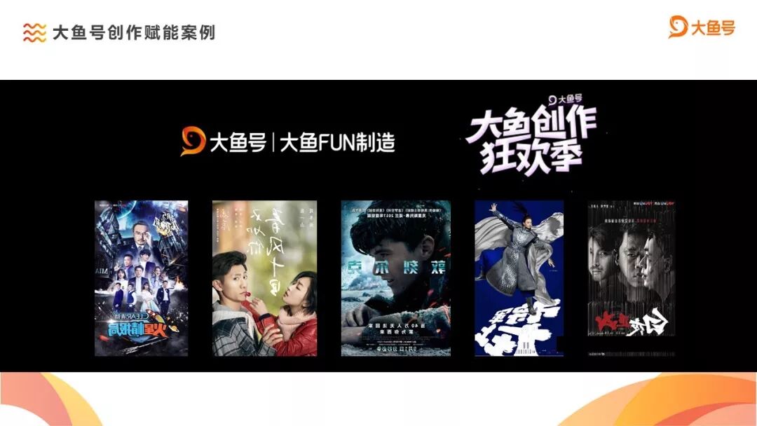 大家可以看一下,这是我们2017年与优酷合作的情况。我们邀请了很多头部的PGC创作者,一起参与我们的活动。包括《白夜追凶》,《将军在上》和《十里春风不如你》,我们都提供了大鱼号的版权支持,让内容创业者在我们版权基础上进行二次生产,这也源自于我们的阿里文娱内部——优酷的优势积累。