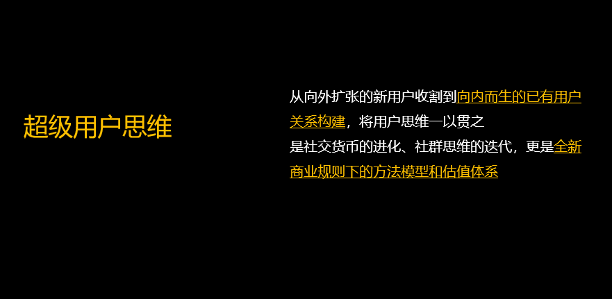 在方法论上,我把它总结成了两个大家非常熟悉的名词,一个叫NPS(净推荐值,亦可称口碑),一个叫ARPU值(每用户平均收入贡献)。我们更加在意用户的口碑,在意用户裂变的能力,更加在意用户长期伴随的关系。所以我们谈论用户运营和经营的时候,是社交货币的进化,是社群思维的迭代,而且是新物种的方法模型和估值体系。