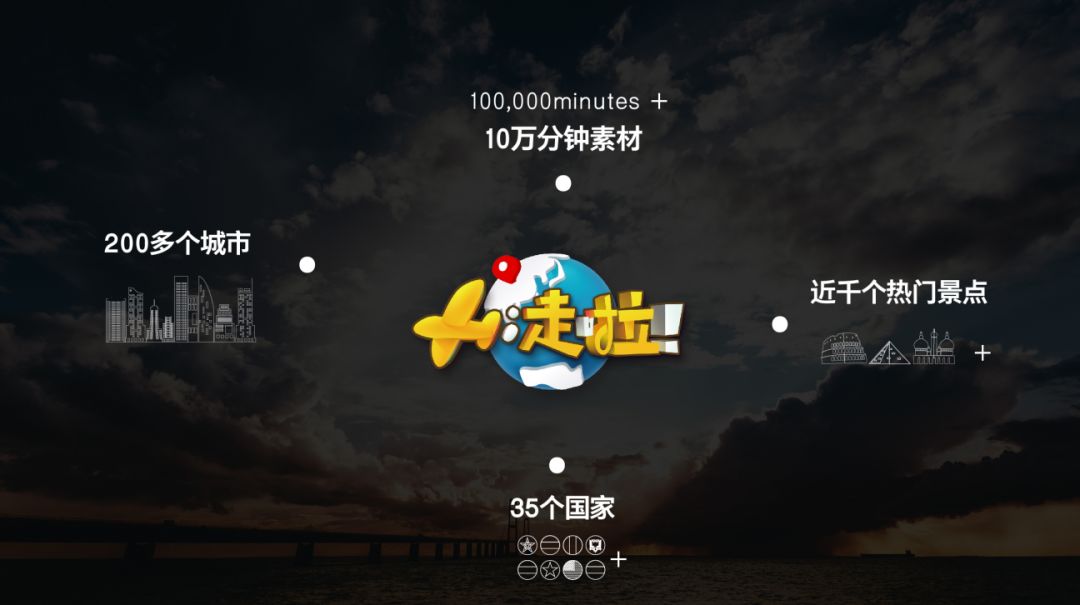 以基于内容剪辑,关键就是素材。在这个过程里面,我们在2017年走了35个国家,累计200多个城市,近千个热门景点,近十万分钟的素材。