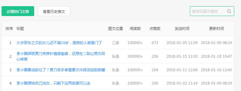从上图中能看出,关键词贾乃亮、拦高铁等热词和热点话题相关,热点话题在特定时间范围内备受用户关注,运营者可凭热点拉高文章阅读。