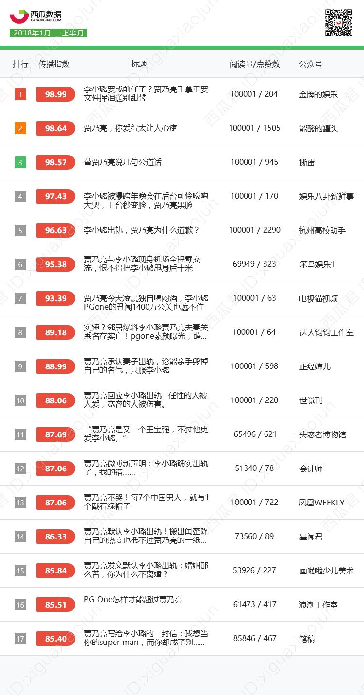 该热点是从12月底爆发,热度持续到1月中旬,相关文章较多,但阅读量能够达到5万以上的却比较少,由于篇幅问题仅节选排名靠前的文章进行展示。