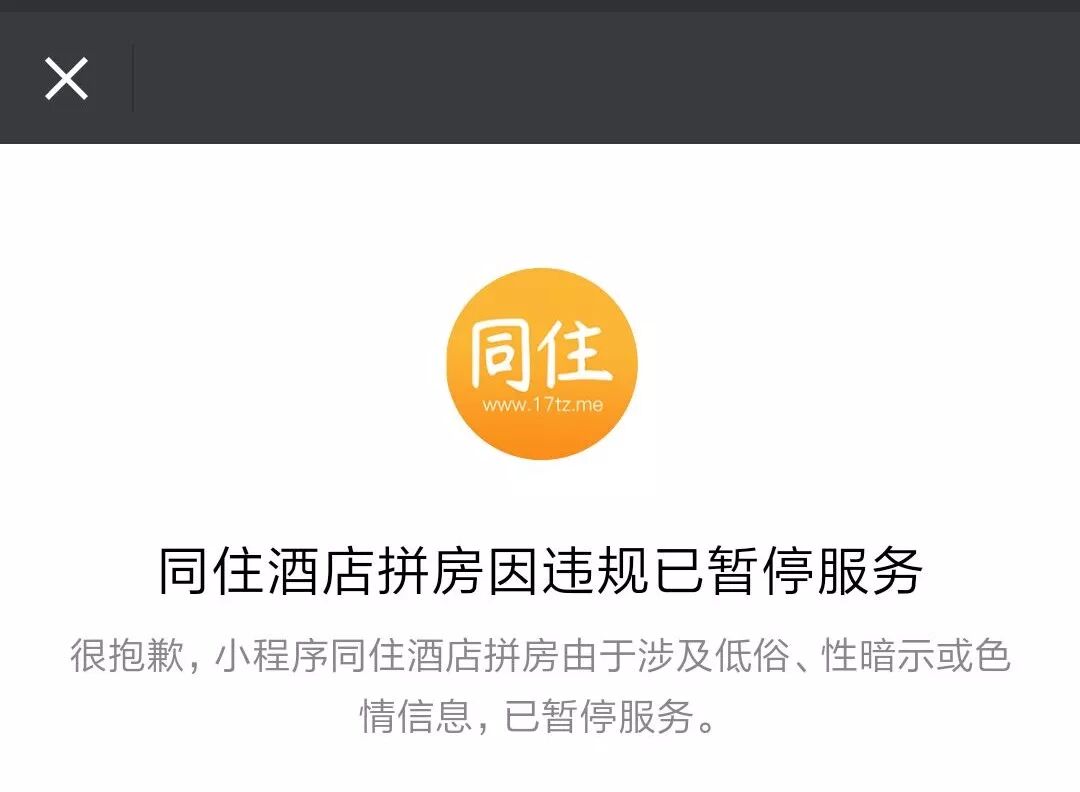 最终,“同住酒店拼房”因涉及低俗、性暗示或色情信息被封。