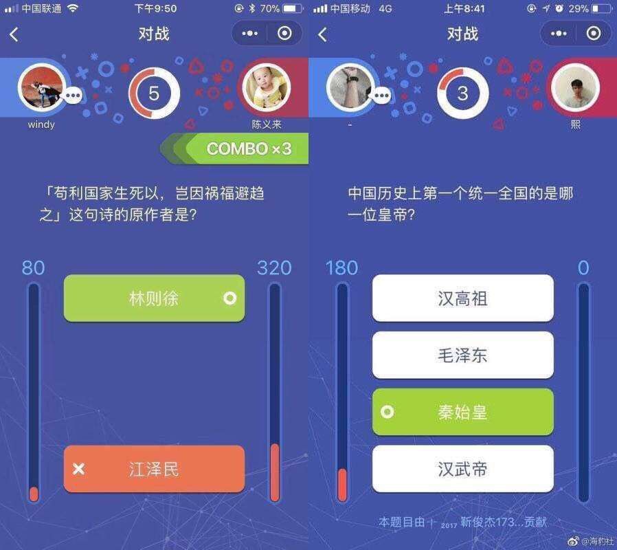 与此同时,好事网友也陆续晒出自己在玩“头脑王者”时遇到的“敏感”问题: