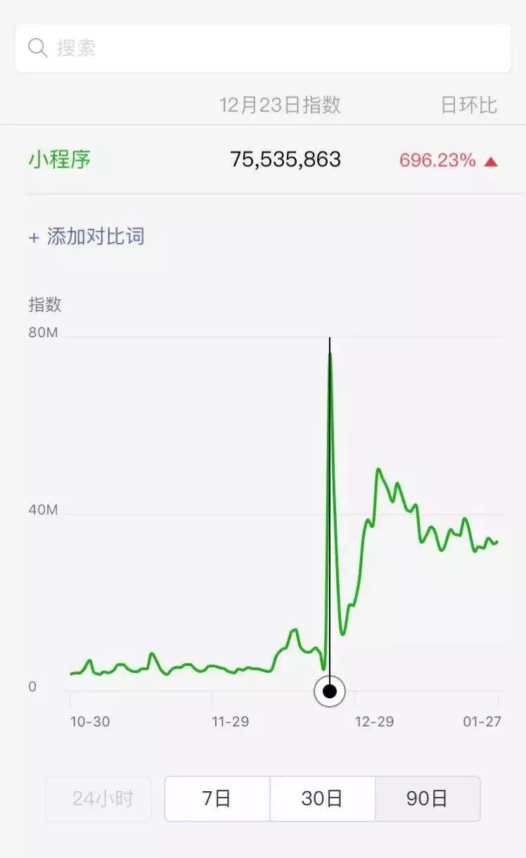 随着圣诞节前后圣诞帽的爆发,以及张小龙第二次站台微信公开课,小程序热度再次爬了个破: