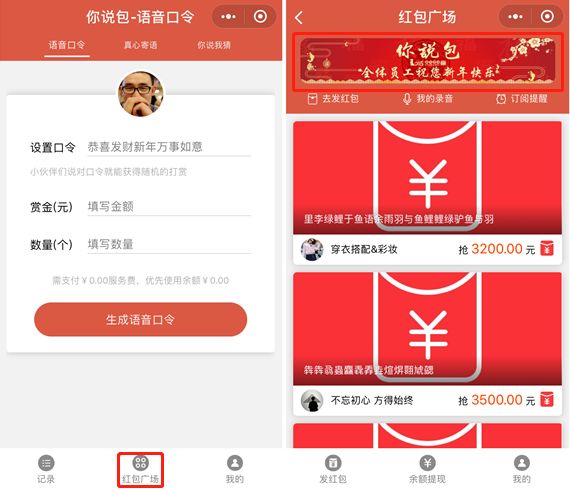 同样火极一时的口令红包当前还没看到品牌露出,不过包你说的“翻版”你说包,创建了“红包广场”这个模块,为品牌露出提供了可能性。不过截至目前广场内还没有品牌红包发布,可能仍处于流量积累阶段。