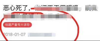 西瓜用户反映,在推送文章标题下,发现了标红的“标题严重夸大误导”标签: