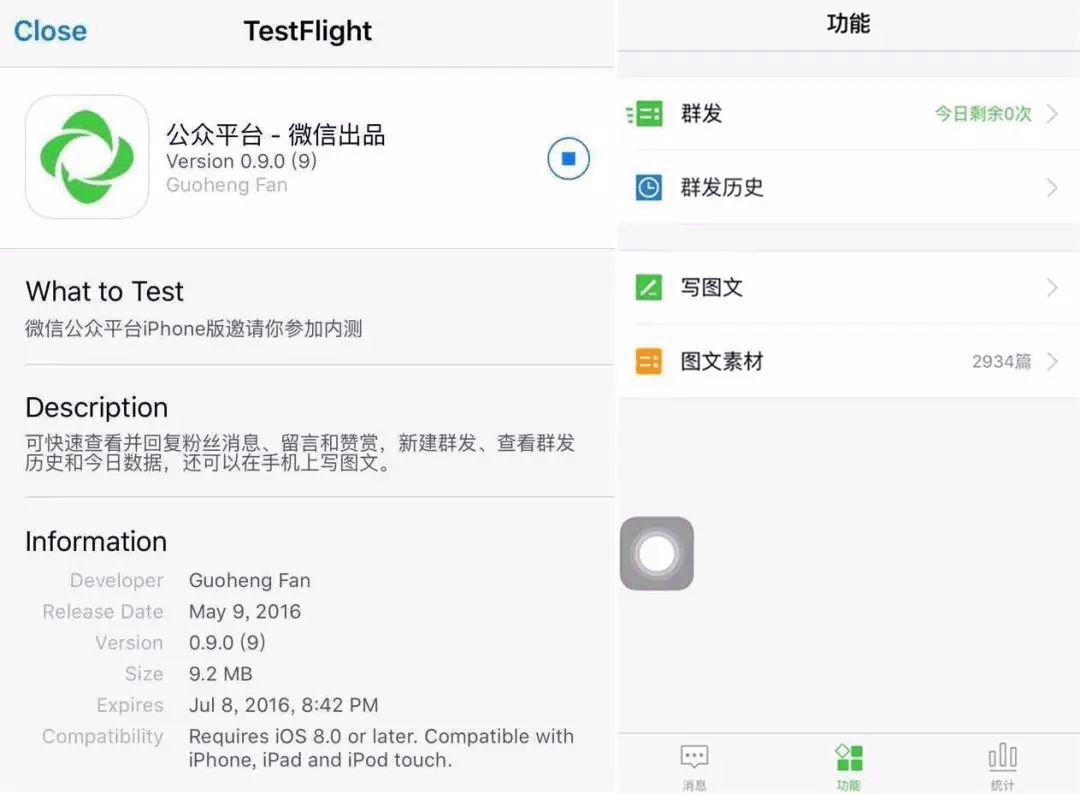 公众平台管理APP即将上线,运营者可快速查看并回复粉丝消息、留言和赞赏,新建群发、查看群发历史和今日数据,还可以在手机上写图文。