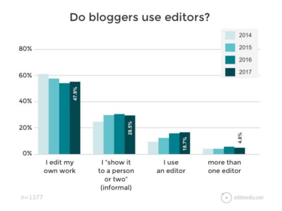 越来越多的内容生产者正在与编辑一起工作。拥有编辑内容的正式流程的人报告优秀结果的可能性要高出43%。