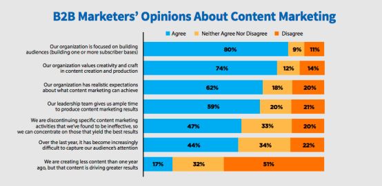 打破网络噪音的一个主要部分是创造真正令人惊奇的内容——如果你不认同内容营销思维创造性的一面,这真的很难做到。幸运的是,根据内容营销协会的调查,74%的的营销人员(和88%的高绩效员工)表示,他们的组织重视这种创造力。