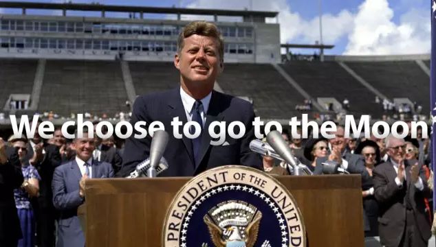 1962年9月,美国前总统肯尼迪发表演讲《我们选择登月》(We Choose to Go to the Moon),这篇演讲被视为美国登月计划萌芽的开端,2年后,肯尼迪遇刺身亡,登月计划被继续执行。
