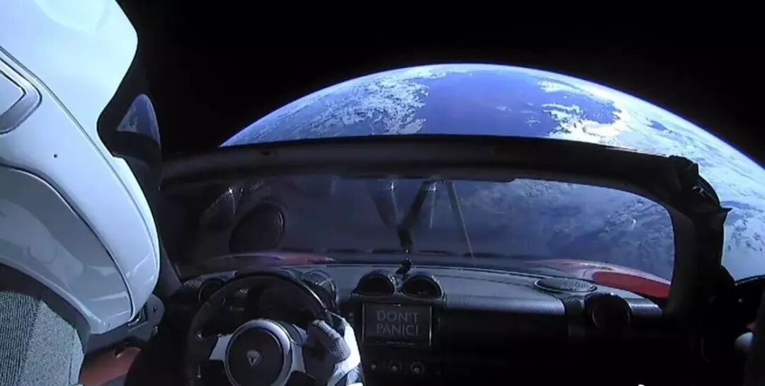 跑车会跟随火箭一起被送进火星轨道,车里会不间断播放大卫鲍伊的名作《Space Oddity》,同时车内放着一本《银河漫游指南》,车内屏幕上打着一行字“don`t panic”(不要惊慌)