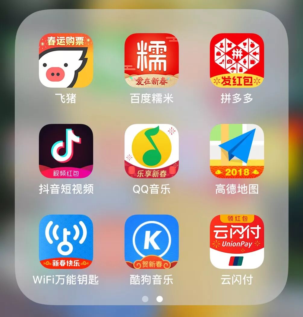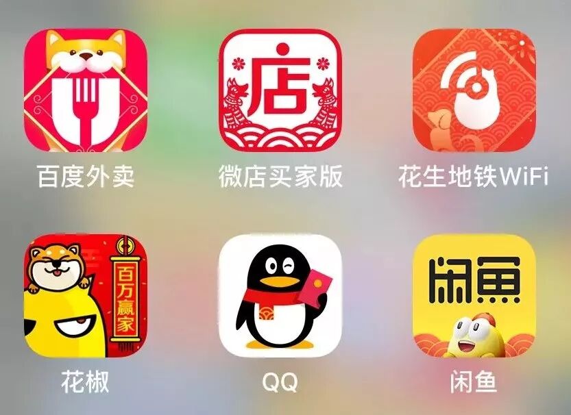 这些App虽然都带上了各种春节元素,但原本品牌图标还在,用户也还是能分辨出来。而下面这些App则近乎疯狂、红的彻底……