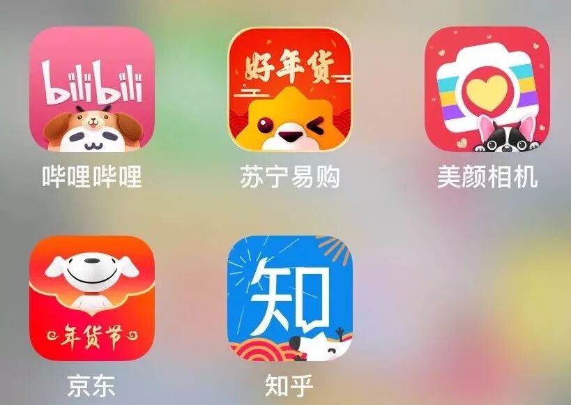 怎么样能让App图标看起来更可爱呢?各家都积极地放出了吉祥物或代表狗年的小狗。