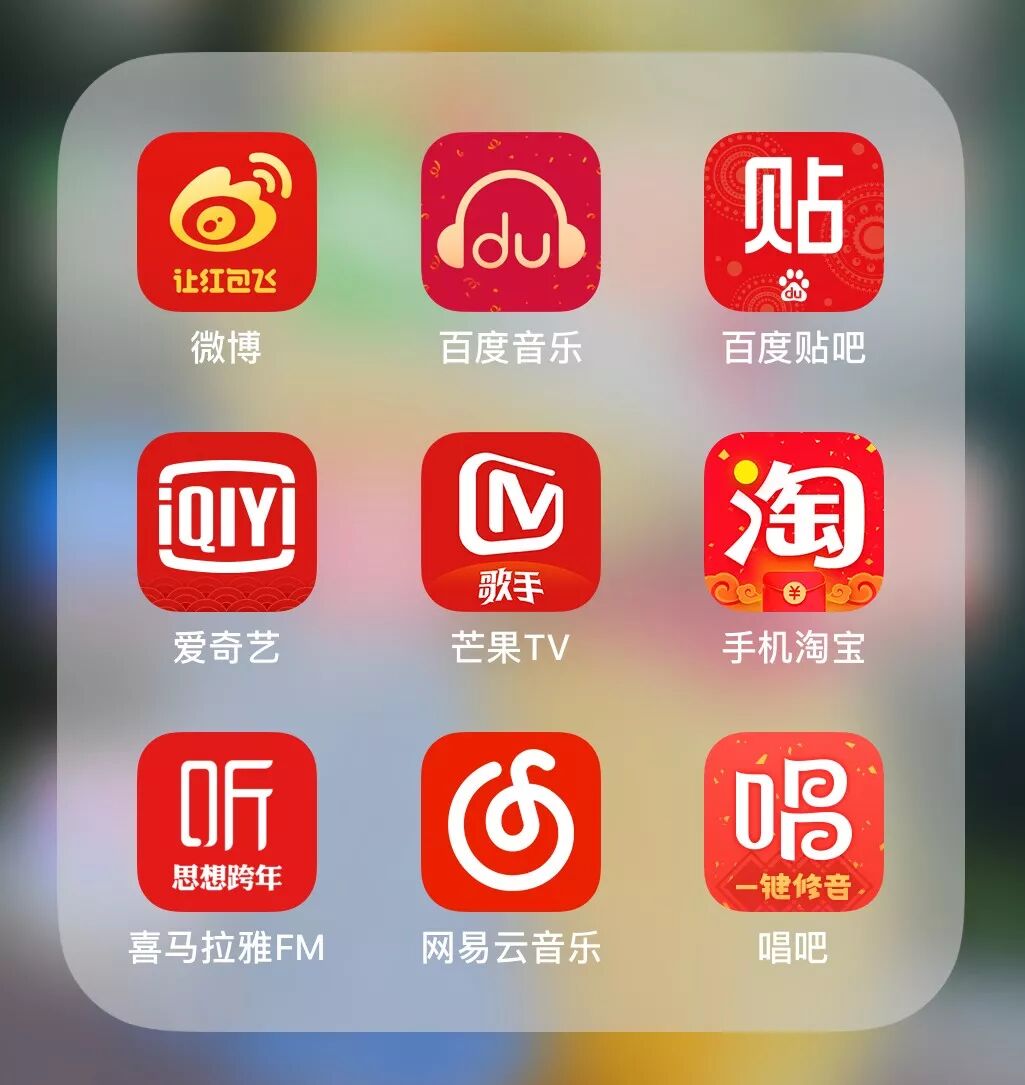 除此之外,曾经蓝色的“百度贴吧”、橙色的“芒果TV”等,一夜之间全部变成红色,生怕我们不知道要过年了!
