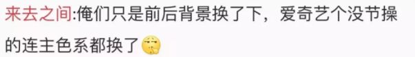 原本鲜明翠绿色的“爱奇艺”也来凑热闹,连微博CEO“来去之间”也忍不住吐槽: