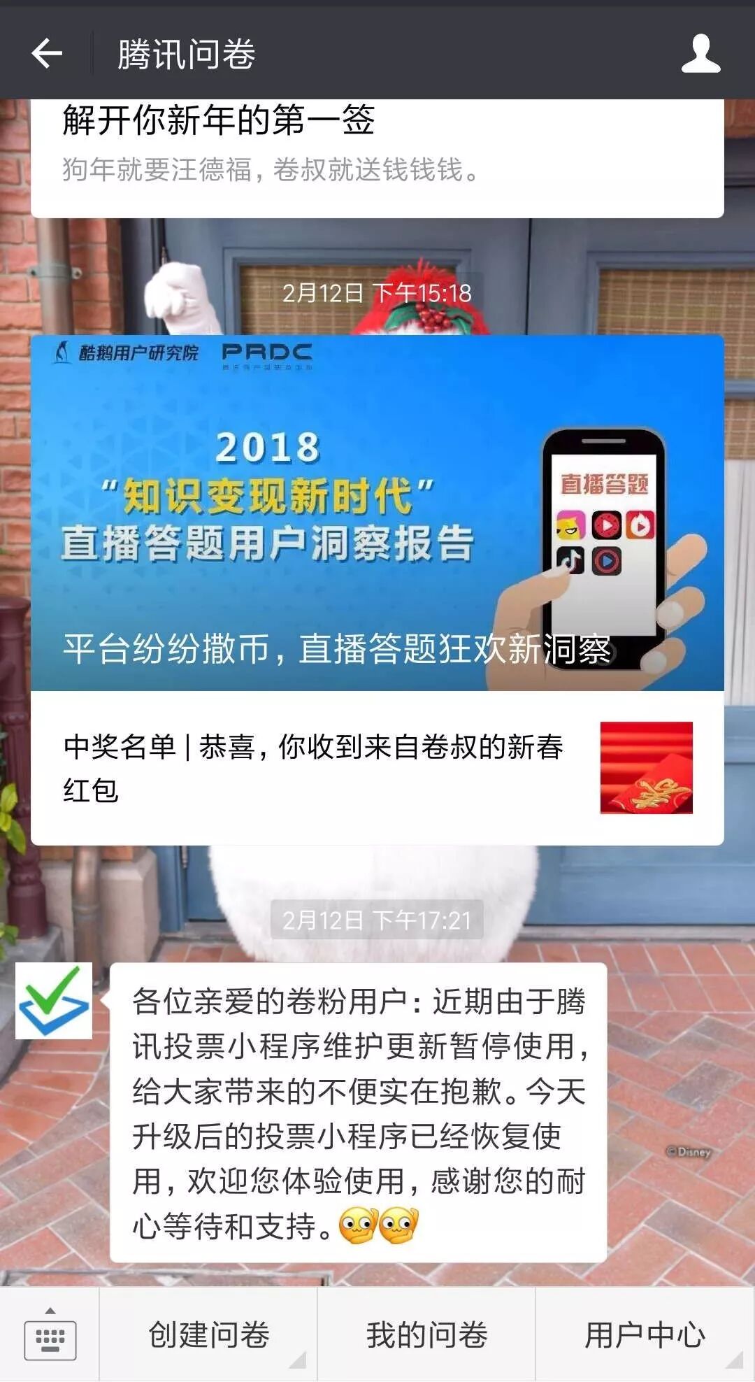 微信公众号“腾讯问卷”称,此前“腾讯投票”因维护更新暂停使用。在2月12日升级后,已经恢复使用。