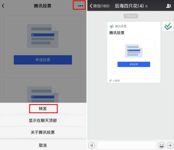 用户可以用“腾讯投票”创建单选或多选投票,发送给任意数量的群和好友,直观获得投票结果。