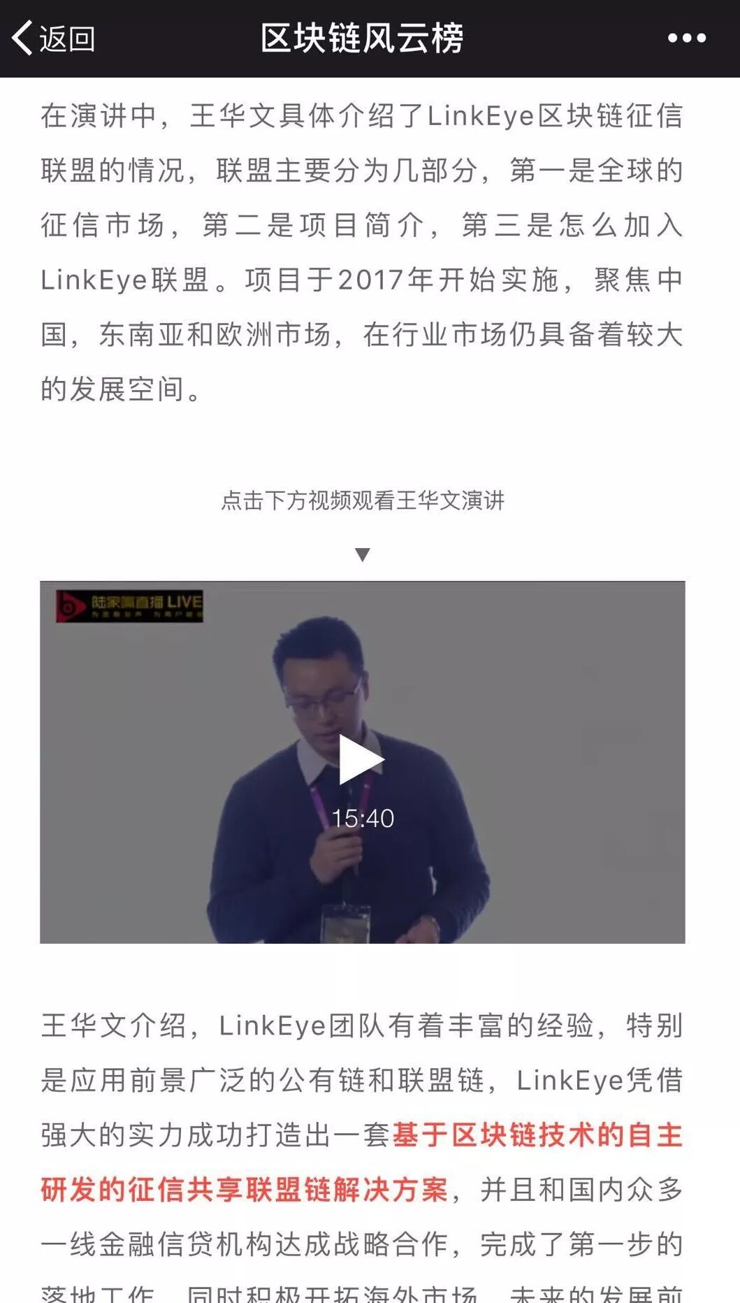 《LinkEye COO王华文:运用区块链打造真实有效的征信数据》