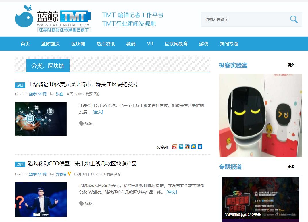 2、蓝鲸TMT网的区块链专栏: