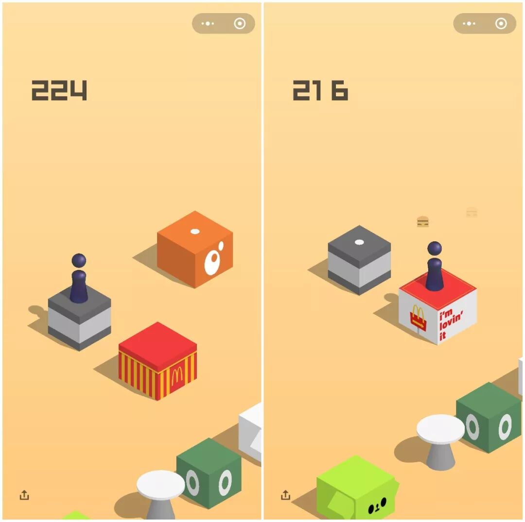 不过,这并不是“跳一跳”的首个广告。春节期间,“跳一跳”就曾出现印有“麦当劳”Logo的盒子。