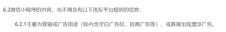 此前,在《微信小程序平台运营规范》中,官方曾明令禁止小程序中出现空白广告位和招商广告,或直接出现漂浮广告。