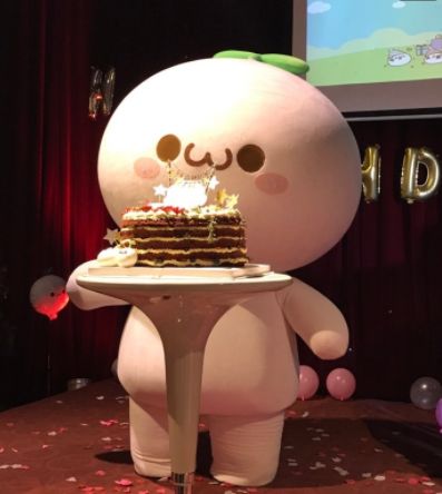 这是长草颜团子首次公开举办生日会。它此时此刻是一个巨型人偶,其它时候可能是一个表情、一件衣服、一盏台灯。更早些时候,它不过是一个高中女孩画本中的线条。