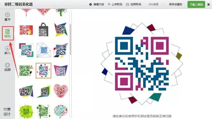1. 进入网站选择一个有逼格的二维码模板样式,这里的模板样式很多,有付费的有免费的,不过免费的模板还是非常多的。