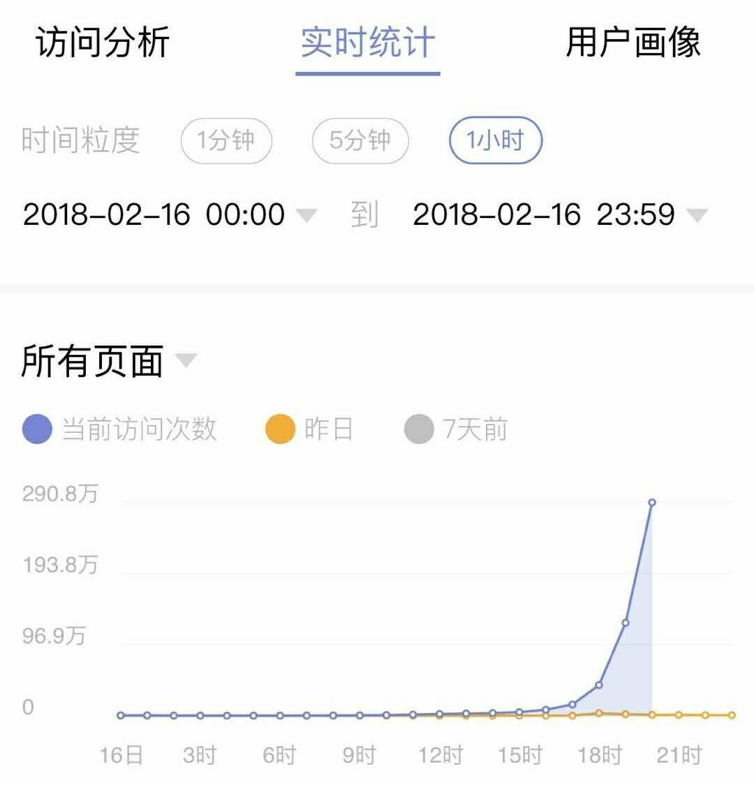魏志成:2月15日我自己在一个群里分享了一下,2月16日下午我看到数据有向上的苗头了,就在朋友圈发了一下,没有做任何的商业推广。爆发的起点是在2月16日下午,当天最高PV 近1000万,日新增180万。