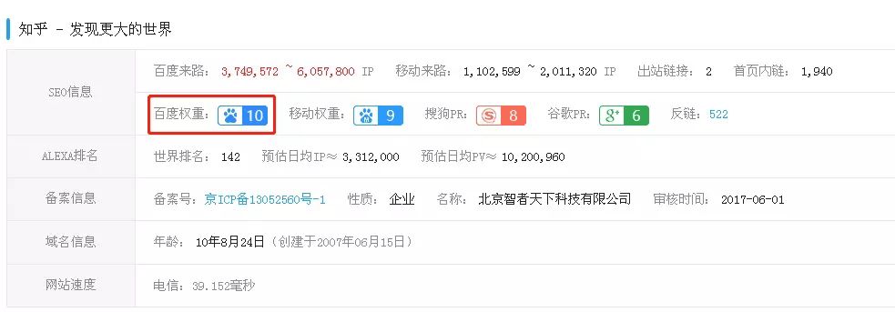 顺便说一下,知乎的各项SEO数据可是杠杠的,很多问题百度等搜索引擎都有收录,也就是说你的回答大都可以在网上搜索到,而且排名还挺靠前。