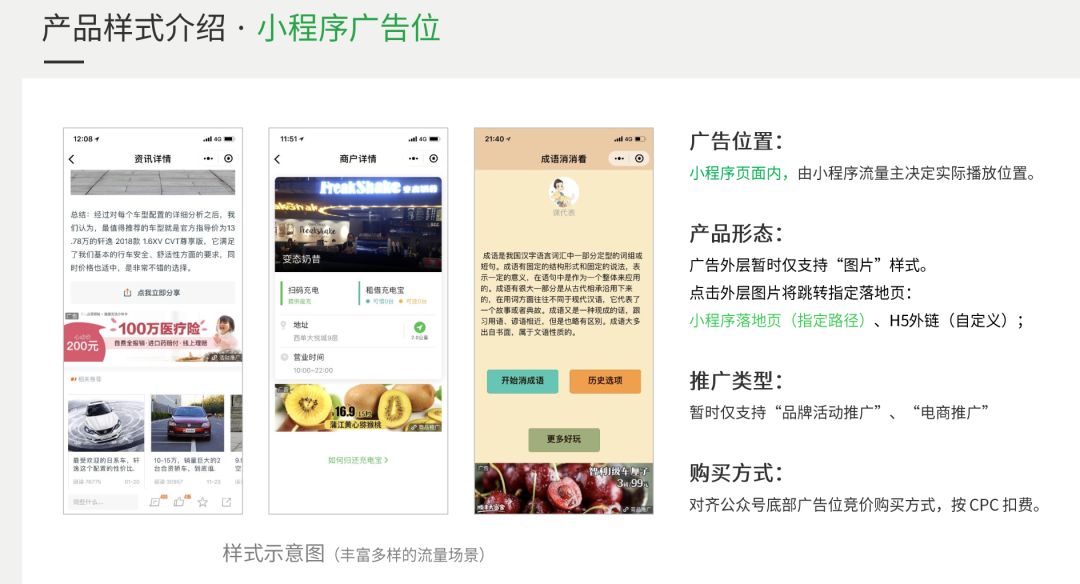 虽然官方还未正式宣布,但榜妹在最新版的《微信广告投放系统介绍》中,已经可以看到“小程序广告位介绍”和“小程序广告投放指引”相关内容。